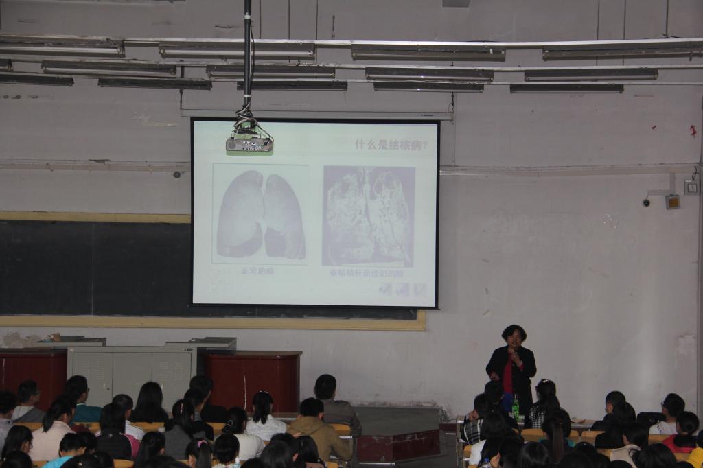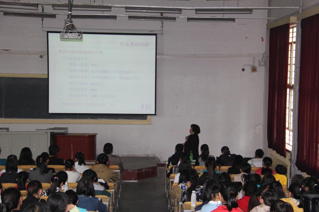 3月24日是第20个世界结核病防治日,为了给学生们普及结核病防治知识,我院于3月21日上午邀请校医院赵梅院长在5103阶梯教室,为我院学生作了题为《结核病防治》的健康教育讲座,讲座由我院党委副书记张珂老师主持。