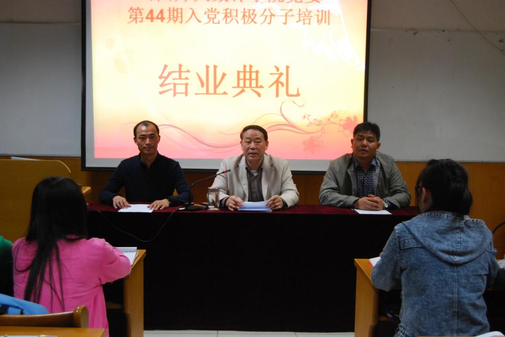 4月20日晚七点,太阳成集团官方网站在科学会堂A710举办第44期入党积极分子培训班结业典礼。院党委书记王成喜,院党委副书记、学工组组长张珂,院团委书记陈立记及全体入党积极分子参加了这次结业典礼。典礼由陈立记老师主持。