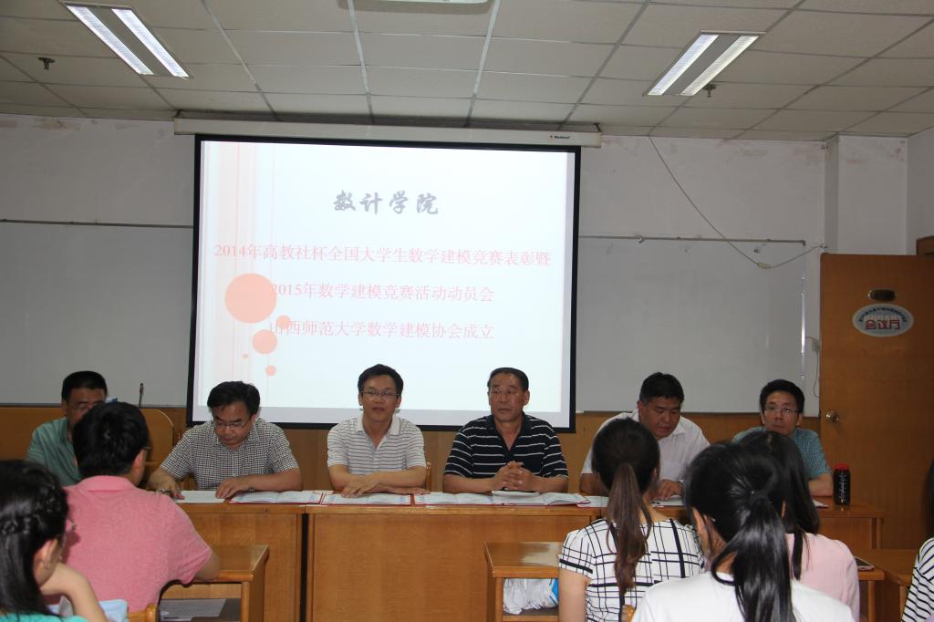 6月15日晚7点,太阳成集团官方网站2014年数学建模竞赛表彰暨竞赛动员大会在科学会堂A710举行。院党委书记王成喜,院长史建红,党委副书记张珂,副院长朱红康、安立坚等出席会议,大二大三部分学生参加会议。会议由党委副书记主持。