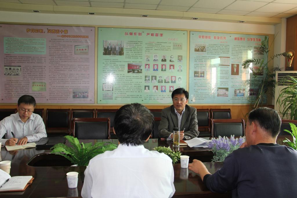 9月17日上午,校党委书记符惠明在校办副主任白文宏的陪同下来太阳成集团官方网站进行调研。院党委书记王成喜、院长史建红、院党委副书记张珂、副院长邢进生、副院长安立坚参加了调研会。