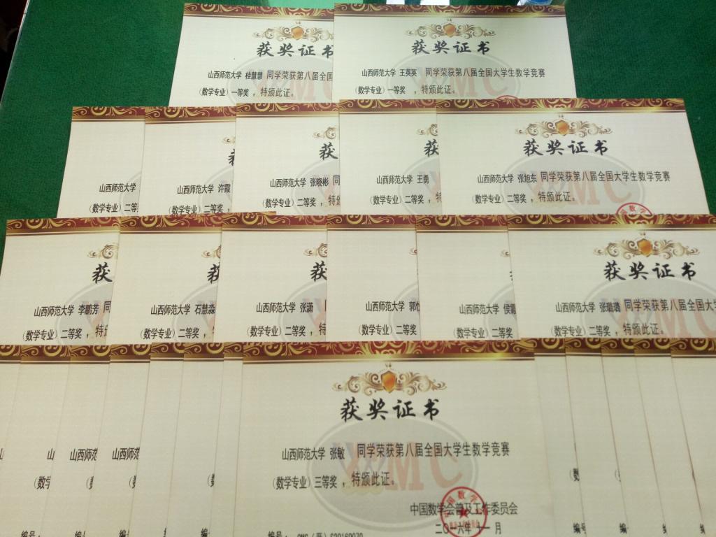 近日,第八届全国大学生数学竞赛成绩揭晓,我院在本次竞赛中取得傲人的成绩,2人获山西赛区专业组一等奖、11人获专业组二等奖、19人获专业组三等奖。