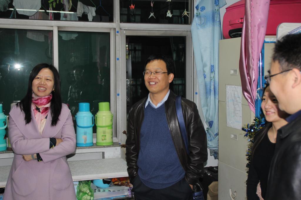 走访宿舍期间,我院领导就同学关系、用电安全、寝室卫生等问题与学生进行深入的沟通。在交流中,了解学生的生活情况、学习状况以及同学们对考研与就业形势的想法。他们谈到,学生不仅要多学习专业知识,更应注重自身的积极健康发展,树立理性、正确的价值观,同时也要不断拓宽自己的知识面。老师们特别叮嘱同学们要提高安全意识,保护好个人人身安全和财产安全,着重提醒学生宿舍用电安全,同时也要注意宿舍卫生文化建设。此外,老师们还建议:在平时生活中,遇到问题及时和老师、同学沟通,如有困难,可以反映给辅导员,学院一定全心全意为大家服务,是同学们坚强的后盾。