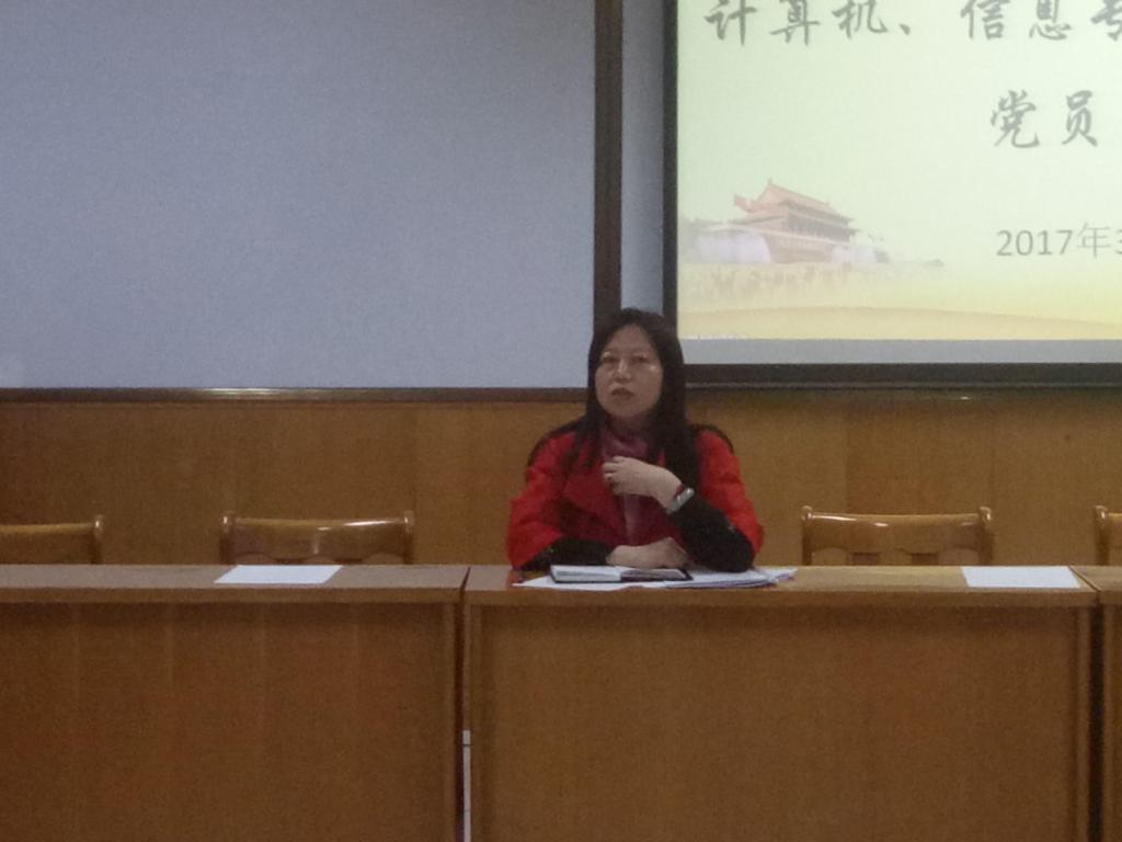 会议最后,院党委书记郝红霞对于本支部“两学一做”学习教育专题组织生活会和民主评议党员工作进行总结和点评,她对于本支部各项工作扎实推进、率先示范给予了充分肯定。同时,她对本支部建设提出三点要求:一是加强政治理论学习,创新学习方式,充分利用微信、网络等新媒体平台推送学习资料,深化学习效果;二是严格遵守上级党组织决定,积极宣传和弘扬正能量;三是要主动作为,积极思考,敢于担当,及时了解学生真正需求。郝书记对本支部党员也提出三点要求:一是加强个人政治理论学习,提高道德修养;二是要树立远大理想信念;三是要勤学好问,下的苦功夫,求得真学问。至此,计算机、信息专业学生党支部党员大会圆满结束。