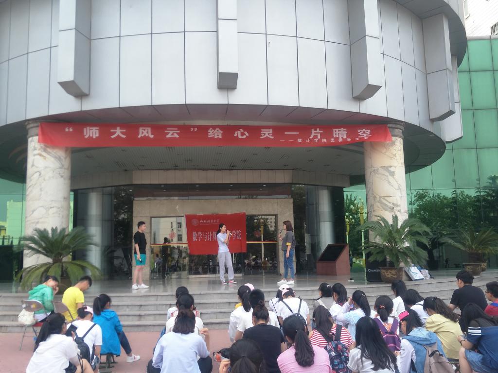 为引导大家关注心理健康,切实提高大学生心理素质,帮助大学生树立积极健康的人生观,2017年5月20日15:30,我院在科学会堂楼下举办以“师大风云”为主题的心理健康教育特色活动。