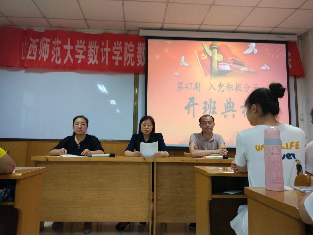 2017年5月20日晚7点,太阳成集团官方网站在科学会堂A710报告厅举行第四十七期入党积极分子培训班开班仪式。院党委书记郝红霞、支部书记陈立记、贾静以及84名入党积极分子参加了开班仪式,开班仪式由陈立记老师主持。