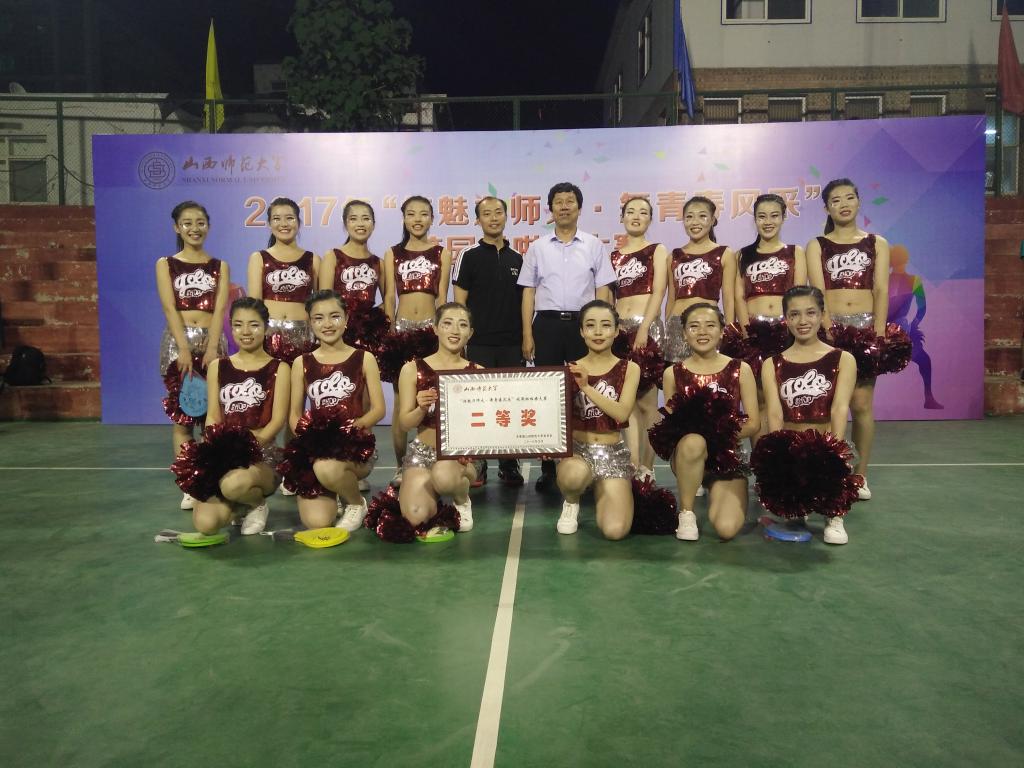 2017年5月23日晚七点,太阳成集团官方网站“炫魅力师大·舞青春风采”校园啦啦操大赛在灯光篮球场正式拉开帷幕,经过激烈的角逐,我院啦啦操队伍以516.54分的优秀成绩从17个学院的啦啦操队伍中脱颖而出,勇夺第二。