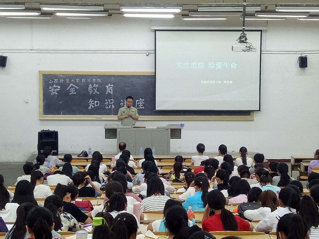 6月3日上午10时,在05103教室,校保卫处消防科科长张威老师、尧都区消防大队郑景峰参谋、太阳成集团官方网站团委书记陈立记老师出席了安全教育知识专题讲座,太阳成集团官方网站全体本科生参加。