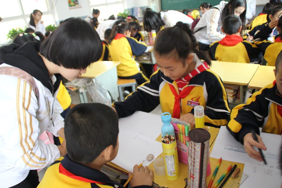 此次活动西关小学有6个班级参与,分三个环节进行。经过学校工作人员的协调安排以及志愿者的合理分工,大家迅速投入到活动当中。志愿者与同学们共同唱响《少年先锋队队歌》,并通过击鼓传花、传声筒、你划我猜等互动游戏拉近了彼此之间的距离。在党的十九大召开之际,我院志愿者根据黑板上提前绘画的板报指导同学们制作以“十九大”为主题的手抄报。同学们认真投入,志愿者热情友善,双方共同完成了一幅幅精美的手抄报。最后,志愿者与同学们合影留念,活动在愉悦的氛围中圆满结束。