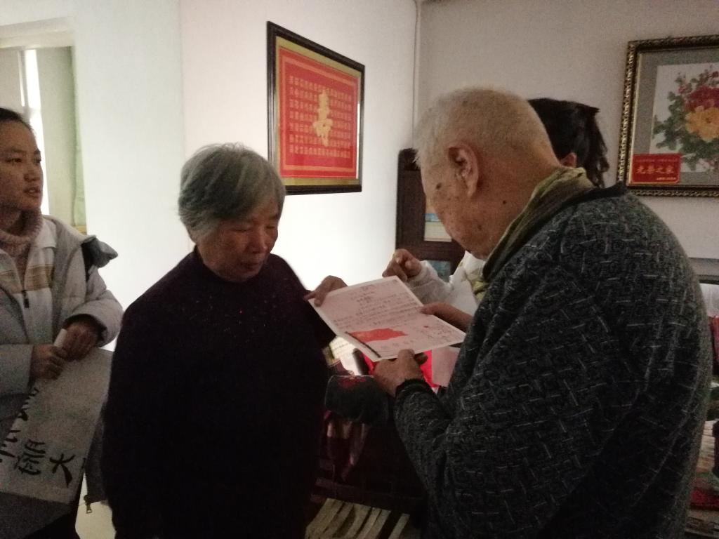 2017年11月18日太阳成集团官方网站组织青年志愿者前往中国人民解放军临汾军区干休所功臣小区看望抗战老兵。年过90岁的老兵与90后的志愿者们一起重温革命故事,共同学习十九大精神,展开了一次“双90”的特殊对话。