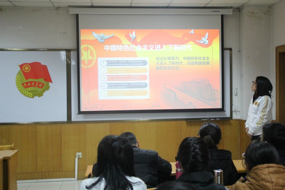 为深入学习、贯彻党的十九大精神,创新“青马工程”培训方式,提高学生骨干综合素质,12月2日晚7时,我院第四期学生骨干培训班在科学会堂A710报告厅举行以“学习十九大”为主题的视频汇报展示活动。我院团委副书记张笑迷出席活动。