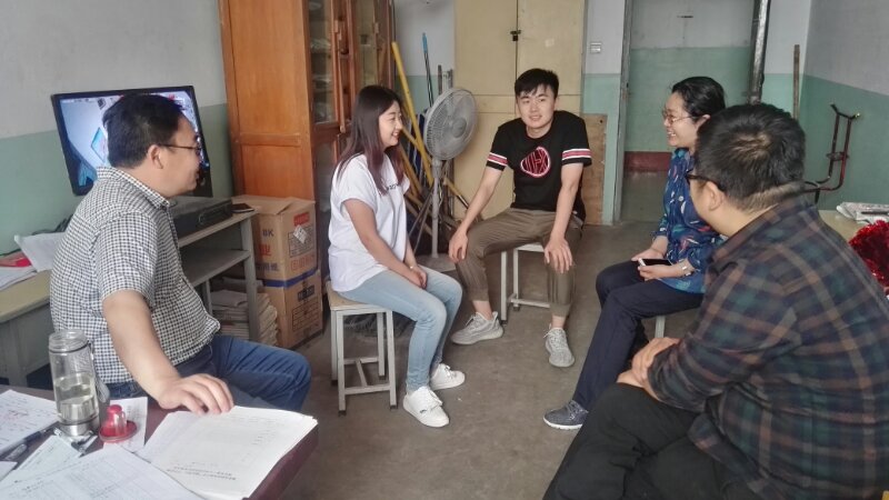 朱院长与实习学校的领导进行沟通交流,详细了解了实习点的教学条件、吃住情况以及实习生表现等。同时,朱院长为实习学生争取了讲公开课、兼任班主任的机会,希望我院学生能够在教育实习实践中认真努力,锻炼好教学技能,学会处理师生关系,为日后就业打好基础,并展现出师大数计风采。