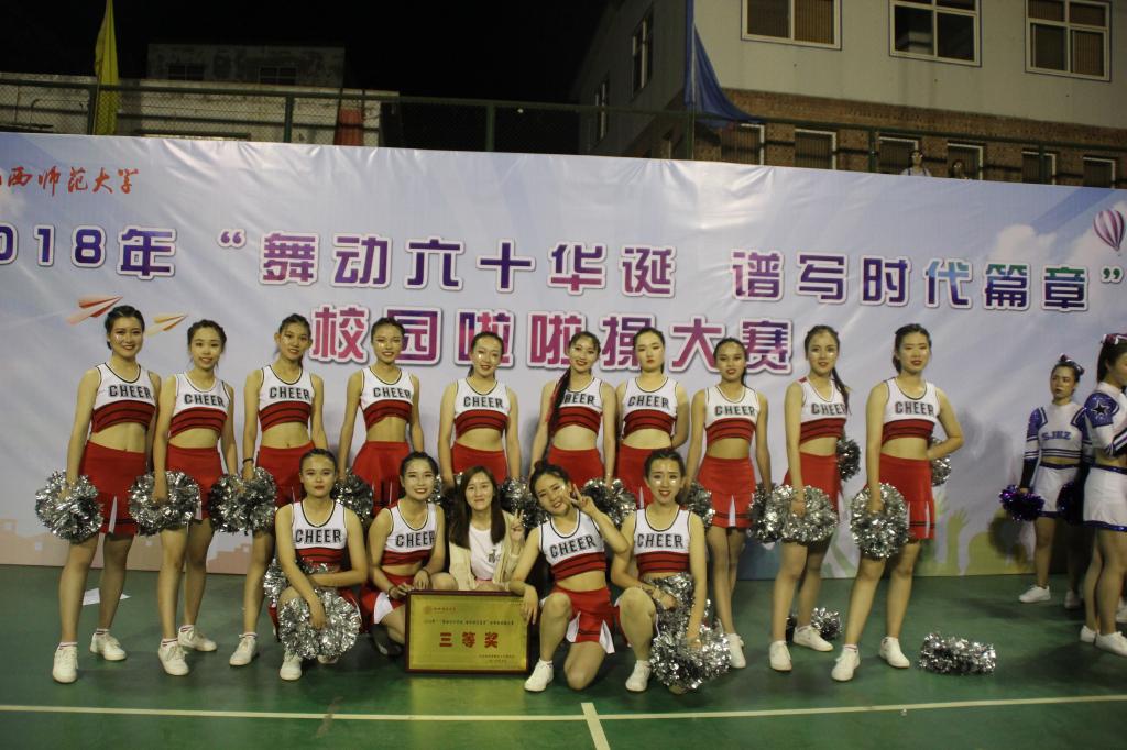 为推动校园文化建设,进一步提升大学生的综合素质,5月14日晚7时,我校2018年“舞动六十华诞,谱写时代篇章”校园啦啦操比赛在灯光篮球场拉开帷幕。我院在比赛中大放异彩,荣获三等奖,彰显出太阳成集团官方网站的青春活力。