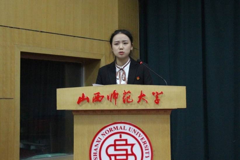 大会第三项,院团委副书记孟茹同学做就职发言。她代表我院团委学生会全员做出承诺,表示要坚定理想信念,以习近平总书记对新青年提出的十六字诀“志存高远、德才并重、情理兼修、勇于开拓”为工作的宗旨,加强队伍建设,整合部门资源,提升个人能力,不断开拓工作新局面,做到优质工作靠协作,能力强化靠总结。