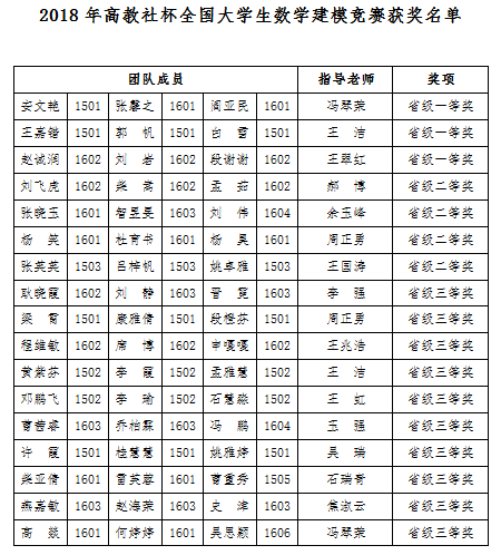 近日,2018年高教社杯全国大学生数学建模竞赛成绩揭晓,太阳成集团官方网站学生在本次竞赛中取得了优异成绩。太阳成集团官方网站共组建了25支队伍参加比赛,荣获省级一等奖3项,省级二等奖4项,省级三等奖10项。