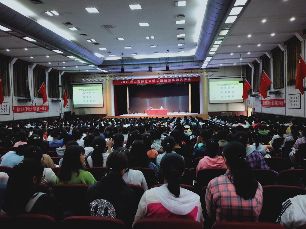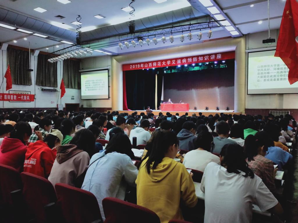 讲座中,王健深入浅出地讲解了艾滋病的发病状况、传播途径、防治措施,并通过引用大量的数据和图片,让学生们深刻了解了艾滋病的危害,明白了有效防治艾滋病的具体措施及青年学生在预防艾滋病工作中的重要作用。最后,王健倡导大家发扬临汾市红丝带学校的立校精神,拒绝歧视艾滋病患者,呼吁关爱与支持艾滋病患者,用心参与社会预防艾滋病工作。