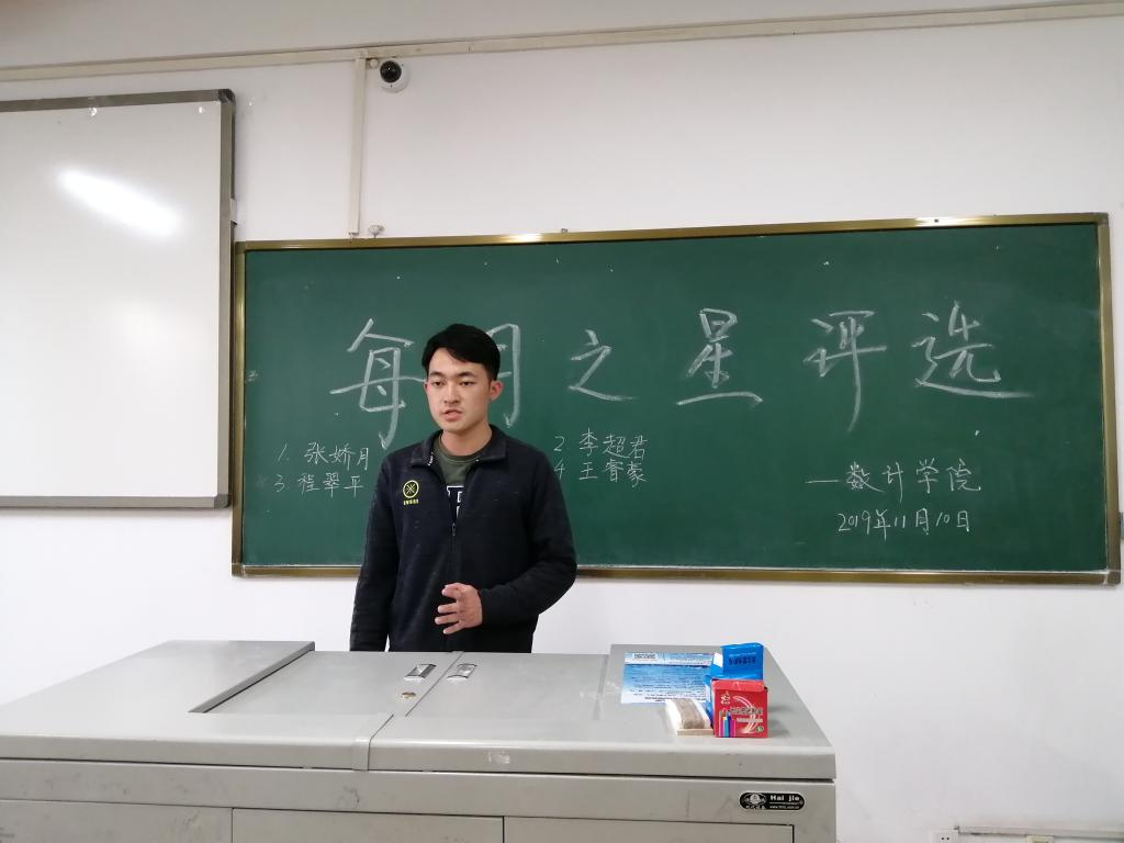 经各部门推荐、综合各项考核标准,最终推选出五位大一干事参加每月之星的选拔。首先,五位同学依次上场总结工作中的提升与不足,分享了加入学生会以来的感悟,表示今后将以更加饱满的热情投入到学生工作中去,积极配合兄弟部门的工作,为实现数计梦而贡献力量。经现场投票环节后,素质拓展部王睿豪荣获太阳成集团官方网站团委学生会十月份的“每月之星”。最后,学生会主席赵佳进行总结发言,对近期各部门有序推进各项工作提出了表扬,同时强调学生会与各班级之间应共谋发展思路,鼓励各班同学对学生会工作提出宝贵建议。