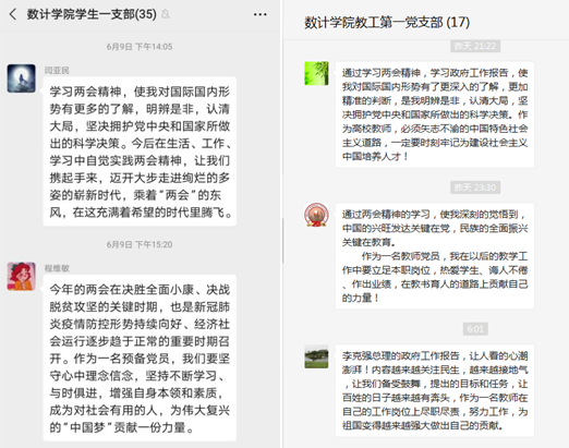 6月5月——6月10日,我院七个党支部组织全体党员认真学习了全国两会精神,通过召开视频会议、线上主题交流等形式积极关注两会动态,深刻领会会议精神。