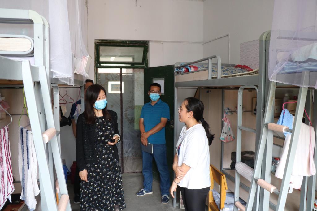 院领导走访调研中,详细询问了学生返校后学习和生活上的困难,嘱咐学生一是要增强疫情防控意识,严格执行体温每日晨午晚三检要求及报告制度,不串门走动、不集中聚集,适当进行户外锻炼。二要加强安全防范和卫生意识,自觉遵守学校规章制度,注意用水用电安全、饮食安全及人身财产安全,共同营造一个温暖、和谐、舒适、安全的学习生活环境。三要充分利用好学校资源优势,与导师密切沟通,勤奋学习,认真完成学业安排。