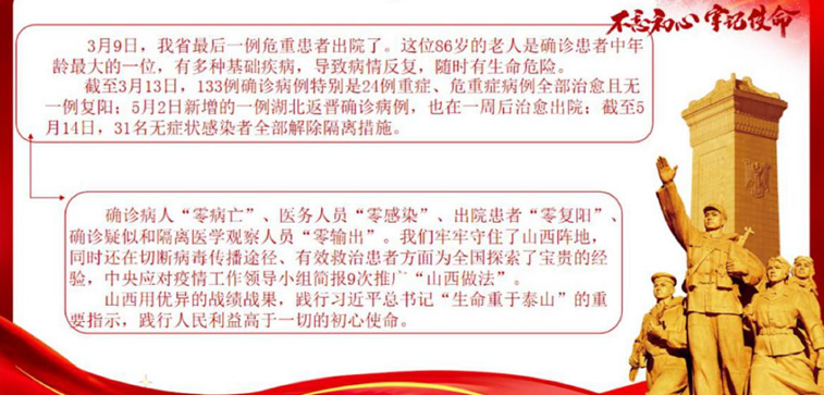 6月8日晚,电视专题片《用忠诚担当书写勇毅前行的山西答卷——新冠肺炎疫情防控斗争启示录》在山西卫视播出。按照学校党委宣传部的要求,太阳成集团官方网站党委立即安排,第一时间在微信群内通知师生收看,通过新媒体平台进行宣传,并组织七个党支部的师生党员通过收看直播、支部集中学及线上热议交流的形式进行了观看学习。