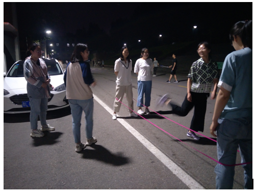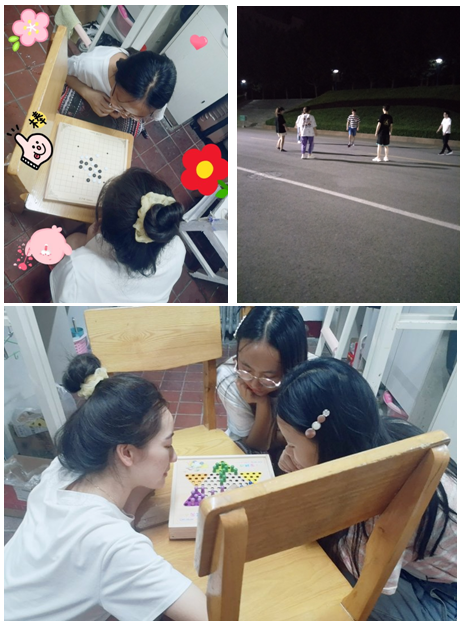 为丰富活跃返校研究生的校园文化生活,学院购买了趣味活动器材,鼓励同学们在课余闲暇时间积极参与益智健体活动。忙碌学习一整天后,在黄昏时分集体活动锻炼,成为同学们一天中最惬意的时光。同学们根据兴趣打羽毛球、跳跳绳、下五子棋,通过轻松有趣的每日活动缓解学习压力、放松身心,增进友谊。