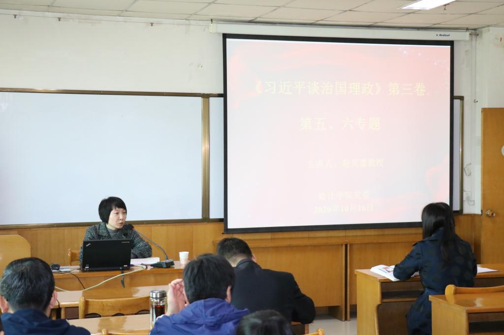 10月18日,我院邀请马克思主义学院副院长赵笑蕾教授在科学会堂A710报告厅为教工党员讲党课,围绕《习近平谈治国理政》第三卷第五、六专题作理论宣讲。院党委书记郝红霞、党委副书记杨亚东、各党支部书记和全体教工党员参加。