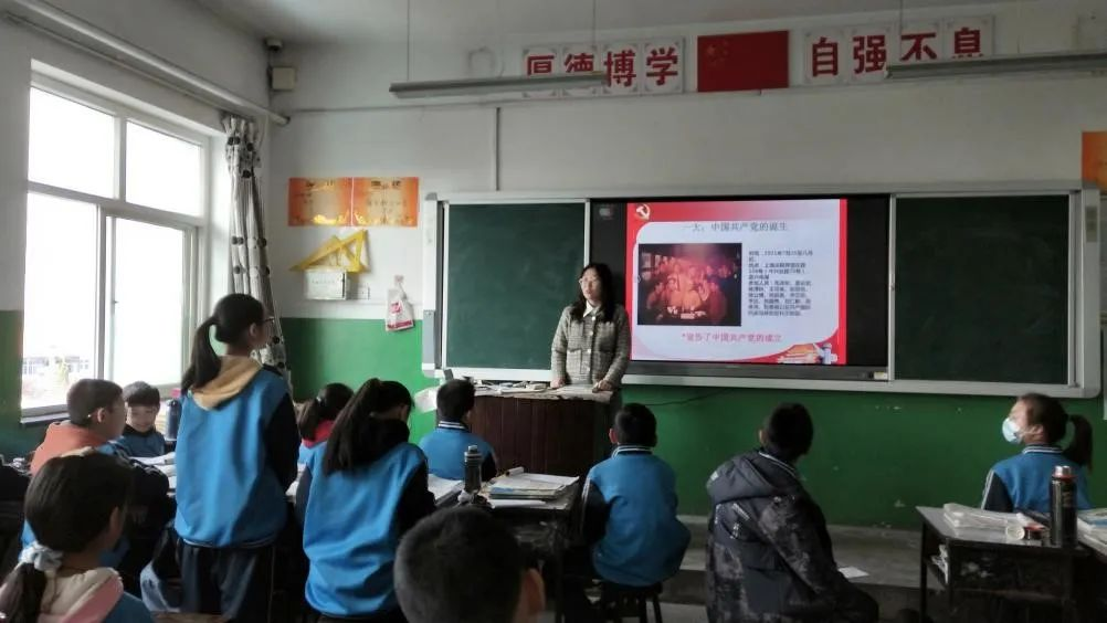 1803班王雨桐在长治黎城三中七年级4班开展宣讲活动,回顾百年党史,学习习近平总书记重要讲话精神,引导学生思考学党史的深远意义。谈及要树立正确的党史观时,有学生分享体会,“在学习历史的时候,评价一个人往往要从功过两方面进行评价,因为一叶可以障目,评价要全面,而在现实中,并不是每个学过马克思主义理论的人都能理解其内涵,所以我们要读好、学好党史类书籍,树立正确的党史观。”