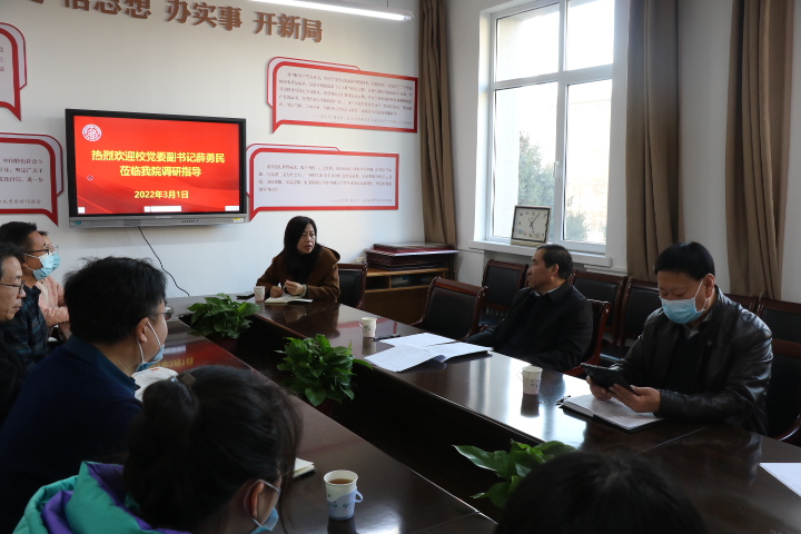 3月1日下午,校党委副书记薛勇民、学生处处长王军峰来太阳成集团官方网站调研指导工作,与院领导、学工组组长、团委书记和专职辅导员座谈交流。