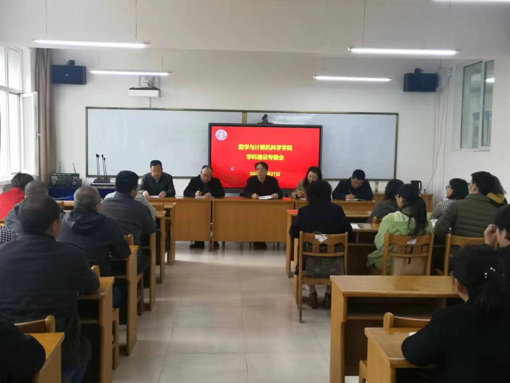 4月21日下午,我院在北区4号教学楼208报告厅召开数学学科建设专题工作会。院党委书记孙学虎、院长安立坚、副院长王洁、副院长王国涛、院长助理周正勇以及学科团队成员参加了会议。会议由副院长王国涛主持。