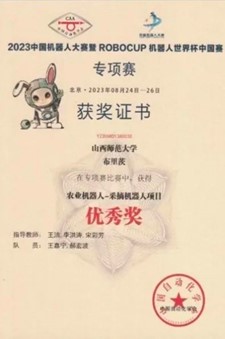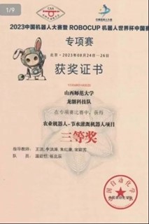 8月24日,由中国自动化学会主办,中国自动化学会机器人竞赛与培训部、中国自动化学会机器人竞赛工作委员会、北京工商大学承办的2023中国机器人大赛暨RoboCup机器人世界杯中国赛专项赛在北京工商大学良乡主校区开幕。我院龙骧科技队在“农业机器人-节水灌溉机器人项目”中荣获三等奖,龙骧科技队与布里茨两支队伍在“农业机器人-采摘机器人项目”中荣获三等奖与优秀奖。
