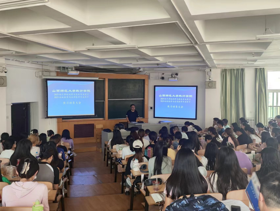 为进一步做好2021级数学与应用数学专业和2021级计算机科学与技术专业2024年下半年实习工作,帮助学生明确实习意义,2024年7月5日,我院在南校区4310教室召开实习动员大会并开展岗前培训工作。我院副院长李璞金教授出席动员大会,本科师范生实习工作负责人王栋老师主持实习动员大会并进行岗前培训工作,2021级数学与应用数学专业免费师范生和2021级计算机科学与技术专业学生参加实习动员大会和岗前培训工作。