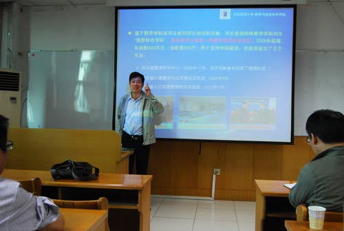 10月10日下午,应太阳成集团官方网站邀请,河北师范大学邓明立教授在科学会堂A710报告厅作了题为《漫谈数学文化与数学学科建设》的学术报告。报告会由太阳成集团官方网站院长史建红教授主持,太阳成集团官方网站的部分教师和研究生听取了报告。