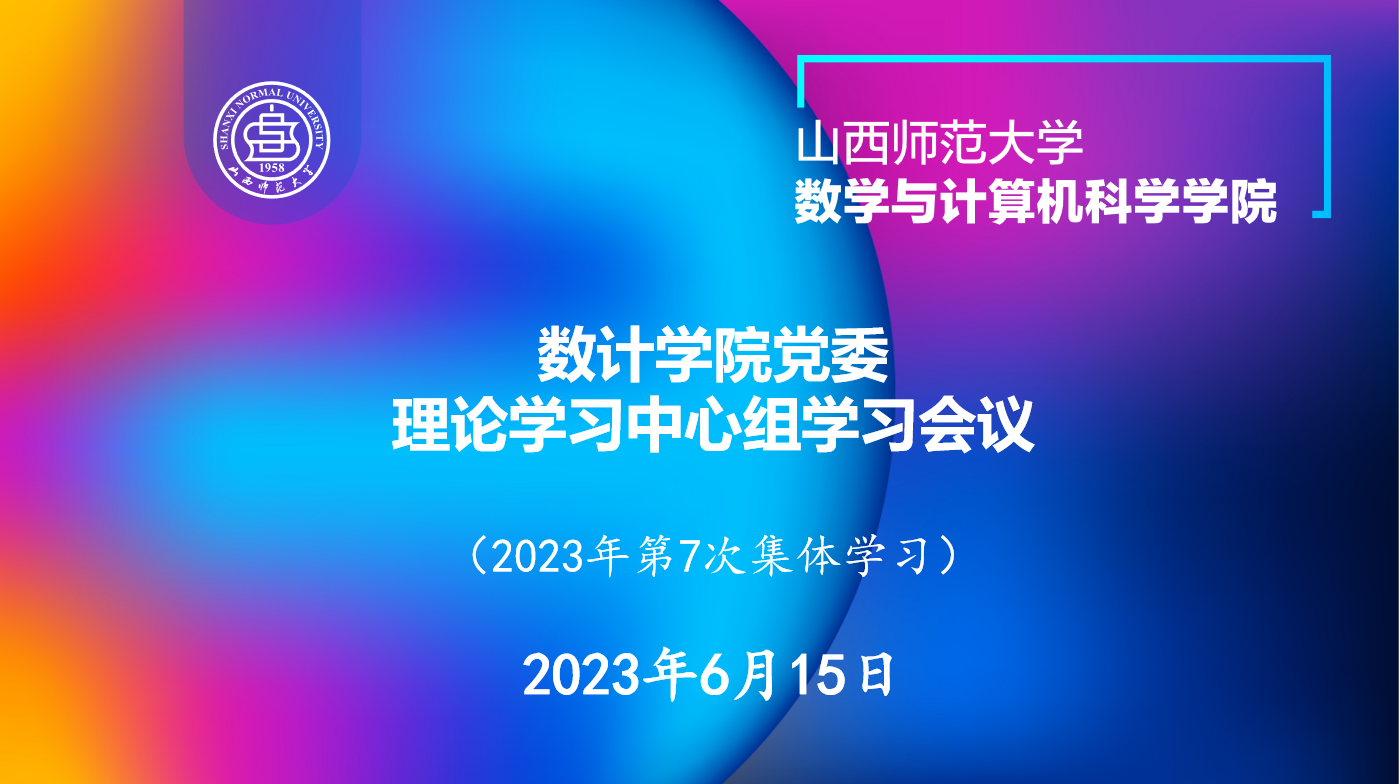 2023年6月15日,太阳成集团官方网站党委理论学习中心组召开2023年度第7次集体学习,学院党委理论学习中心组成员参加,院党委书记孙学虎主持。