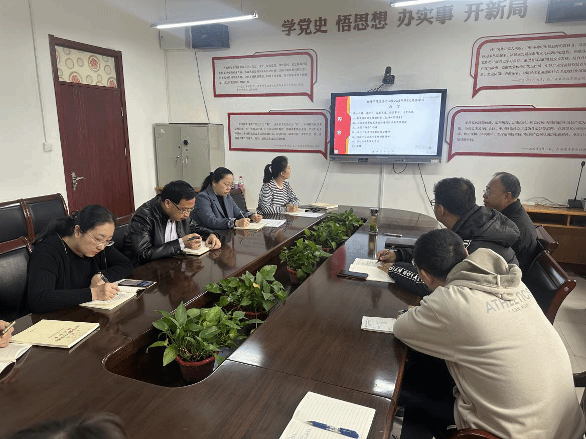 3月27日上午9点,我院党委理论学习中心组在北区4号教学楼202会议室召开2025年度第2次集体学习会议,会议由院党委书记孙学虎主持,学院党委理论学习中心组成员及各支部书记参加。