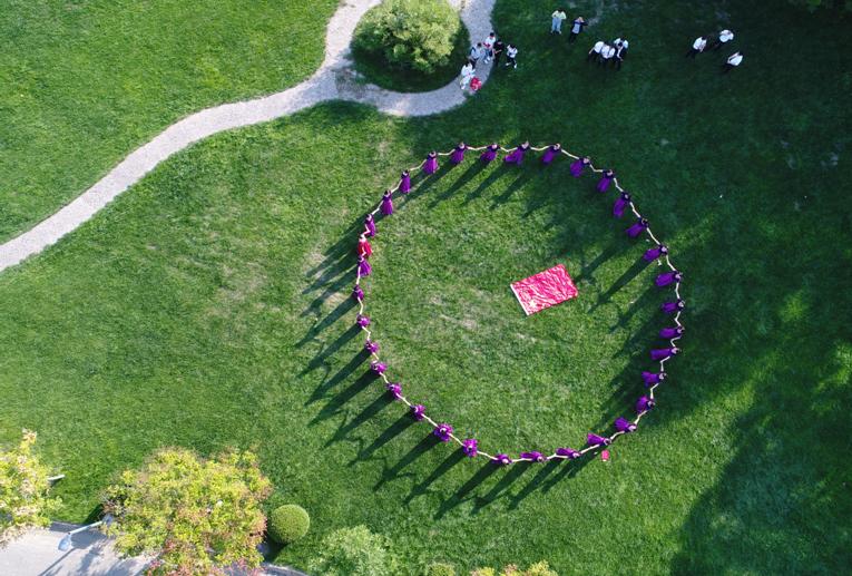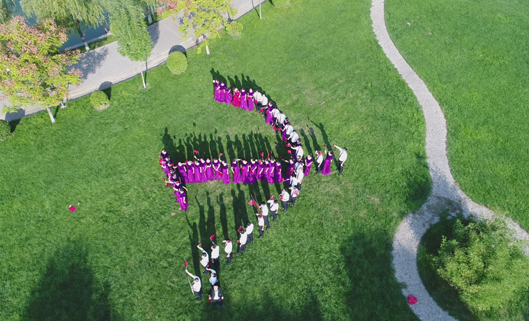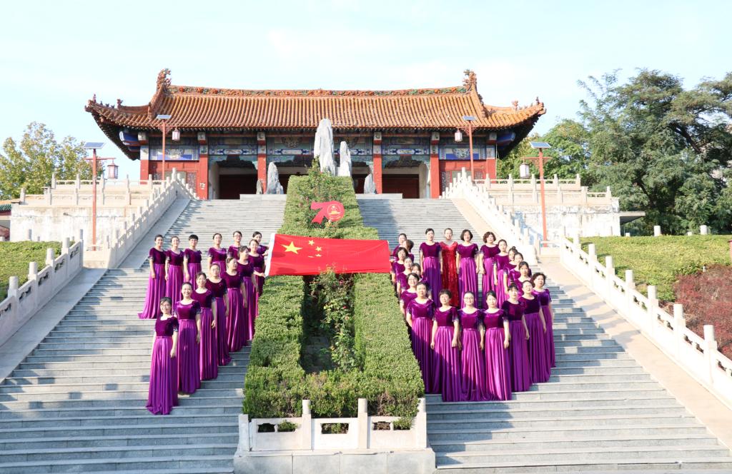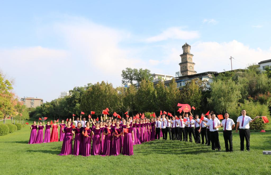 9月25日,莳英园内,我院女教职工“秀”出自己的风采,组合出“70”、“党徽”等别样的造型,高吭吟歌,献礼祖国七十华诞。绿茵场上,“我和我的祖国,一刻也不能分割,无论我走到哪里,都流出一首赞歌……”大家共同歌唱《我和我的祖国》,表达了我院教职工热爱祖国的豪情,唱出了对祖国赤诚的心、火热的爱。最后,我院全体教职工手举鲜艳红旗,洋溢着幸福的笑容,在巨人广场进行了合影留念。